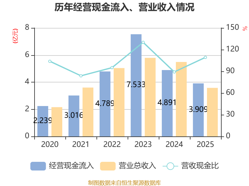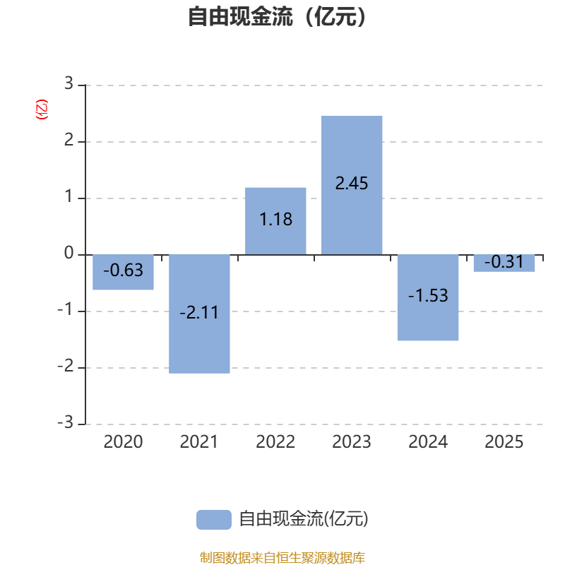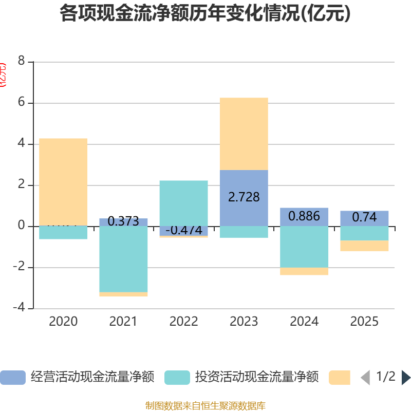 截至2025年,公司经营活动现金流净额为7395.45万元,同比下降16.57%;筹资活动现金流净额-5153.82万元,同比减少1526.77万元;投资活动现金流净额-7071.09万元,上年同期为-2.02亿元。