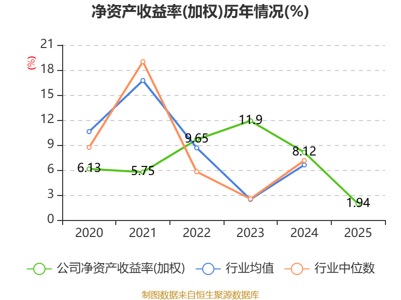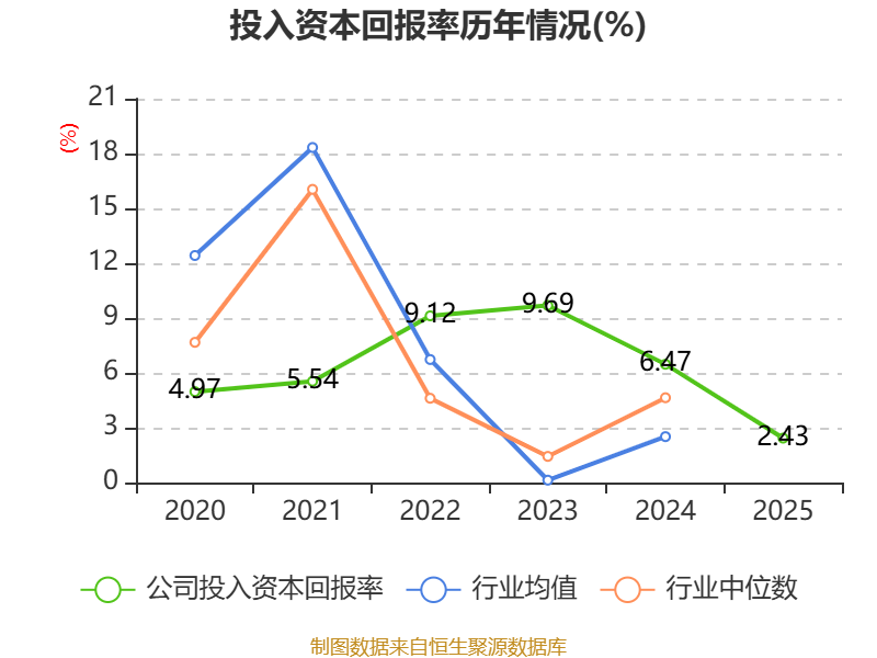 数据显示,2025年公司加权平均净资产收益率为1.94%,较上年同期下降6.18个百分点。公司2025年投入资本回报率为2.43%,较上年同期下降4.04个百分点。