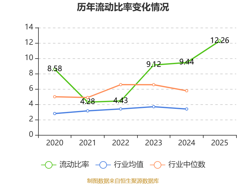 2025年,公司流动比率为12.26,速动比率为11.77。