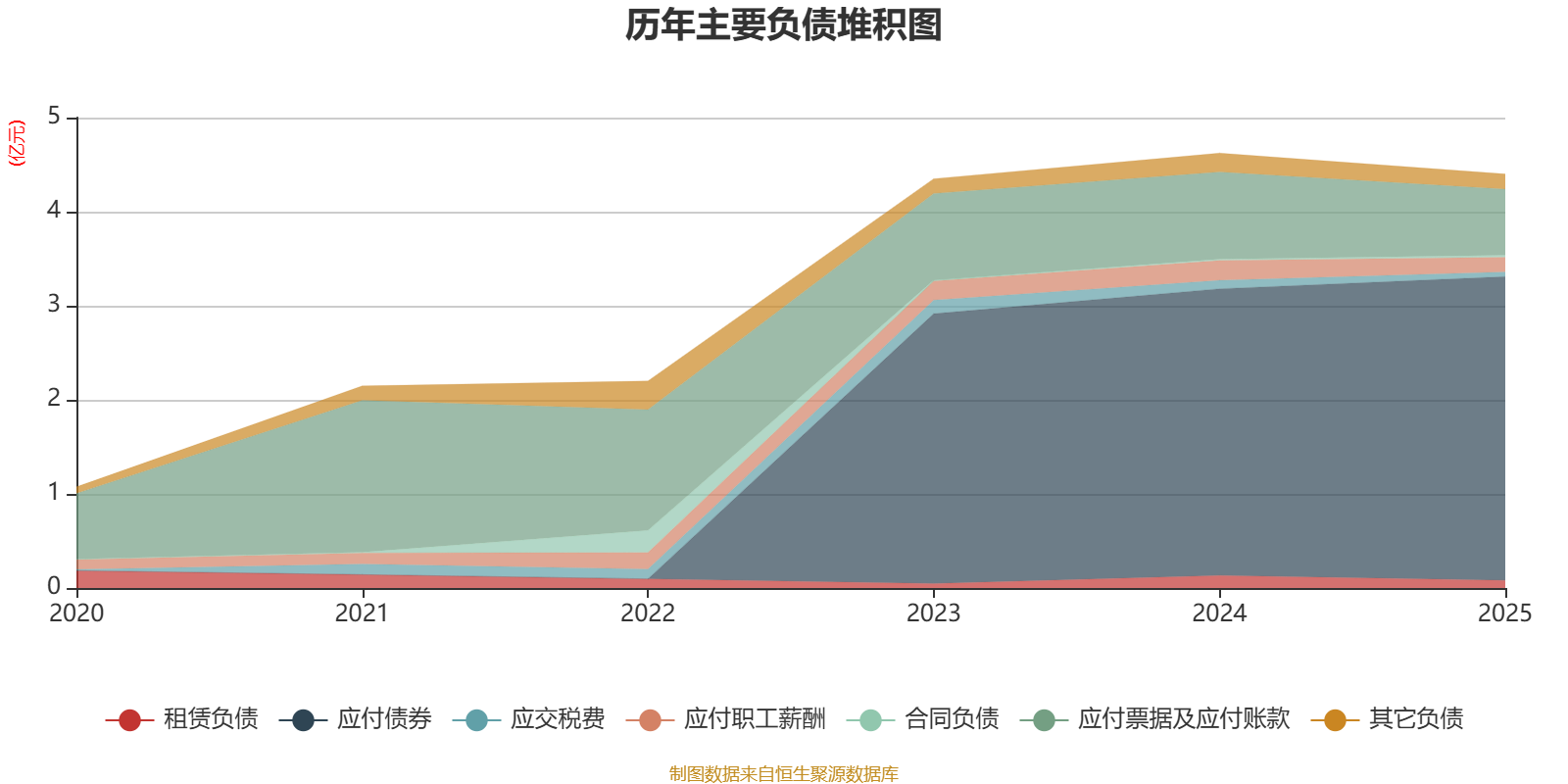 负债重大变化方面,截至2025年末,公司应付债券较上年末增加5.96%,占公司总资产比重上升1.85个百分点;应付票据及应付账款较上年末减少24.09%,占公司总资产比重下降1.31个百分点;应付职工薪酬较上年末减少26.41%,占公司总资产比重下降0.33个百分点;租赁负债较上年末减少39.54%,占公司总资产比重下降0.33个百分点。